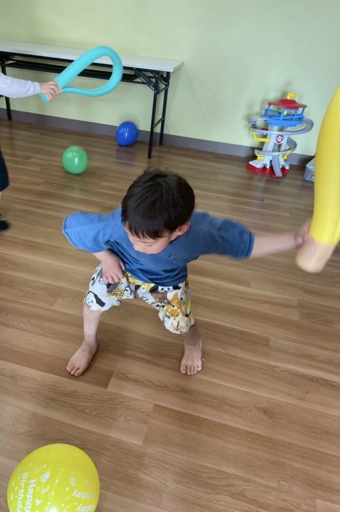 いまここmico:風船テニス🎾NEWS、いまここmico ブログ 5/14(水)室内にて、「風船テニス」を実施しました🎾 プールスティックをラケットに見立て、風船を相手コートに打ち込みます🎾・飛んでくる風船を目で置いながら打ち返すことで、空間把握力を育てる・勝ち負けのある遊びを通じて、感情の整理や切り替えの練習を行う。等、上記をねらいとし活動に取り組んでいただきました👍 活動では風船は10個以上あり、全員が走り回り風船を追いかけ楽しみながら活動を行うことが出来ました😊