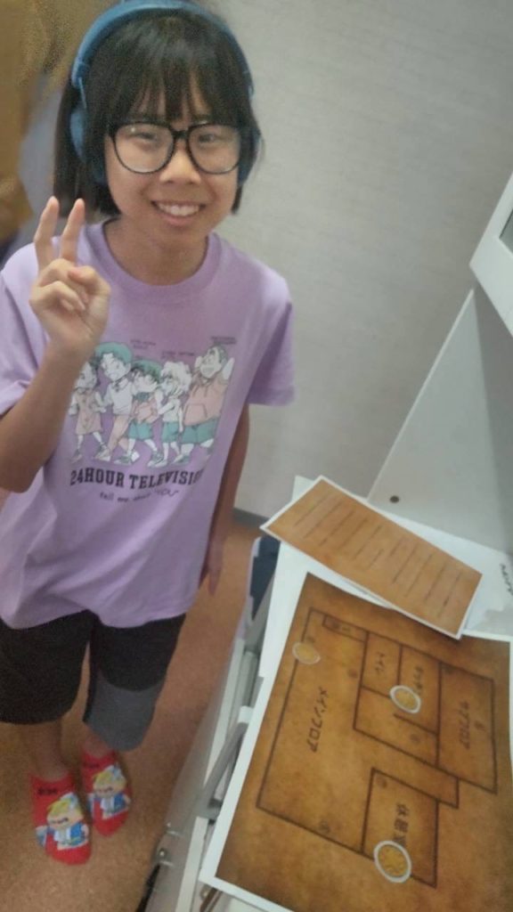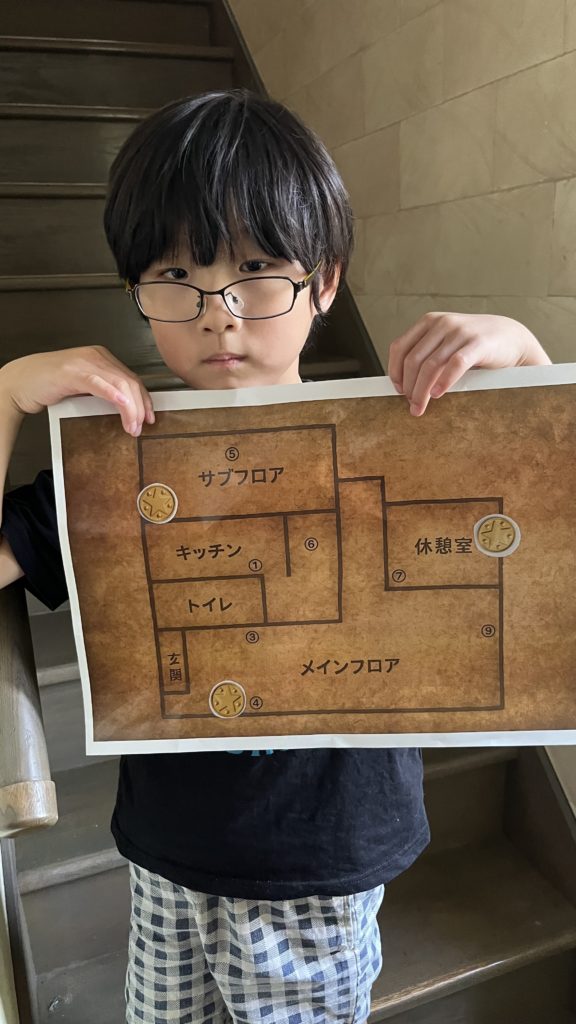 いまここcare:いまここクエストNEWS、いまここケア ブログ 先日、「いまここクエスト」という活動を行いました✨ドラゴンクエストという1986年に誕生した日本を代表するロールプレイングゲームをテーマにした活動となっております😁今回はいまここケア内に隠された、10枚の小さなメダルをお友達と協力し合って探してもらいました。2階でルールの説明を聞いてもらい、子どもたちには3チームに分かれてもらいます。そこでそれぞれのチームに、メダルが隠された場所のヒントが書かれた紙と地図を手渡し、メダルがどこに隠されているのかまずチームで相談しながら考えてもらいました😄ヒントは「たいようの光から守ってくれる布の後ろを見てみよう」「あそぶものがいっぱいあるところ、8つの穴のうちどこかにあるよ」など、少し考えないとわからないものを用意しました。探している時は「どこにあるかな?」「こっちにあるんじゃない?」といった、チームで協力しあう声が聞こえていましたよ✨👌
