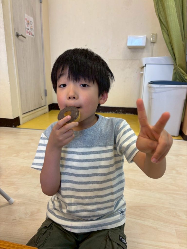 子どもたちは、ゆっくりと慎重にドーナツを乗せることができましたね。