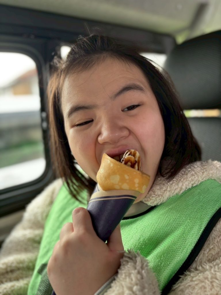 いまここcare:おいしいクレープを買いに行こう!NEWS、いまここケア ブログ 2月14日いまここcareでは「おいしいクレープを食べに行こう!」という活動を行いましたまずは「甲良町総合公園」で遊び、遊具を使って体を動かしたり、長〜いローラー滑り台で楽しんだりと元気いっぱい過ごしましたたくさん体を動かした後は、「道の駅せせらぎの里こうら」へ移動し、クレープを購入しました。メニューを見ながら食べたい味を選び、出来上がりを楽しみに待つ姿が見られましたよ自分で選んだクレープを「おいしい!」と嬉しそうに食べ、外出ならではの活動を満喫することができました