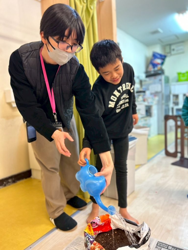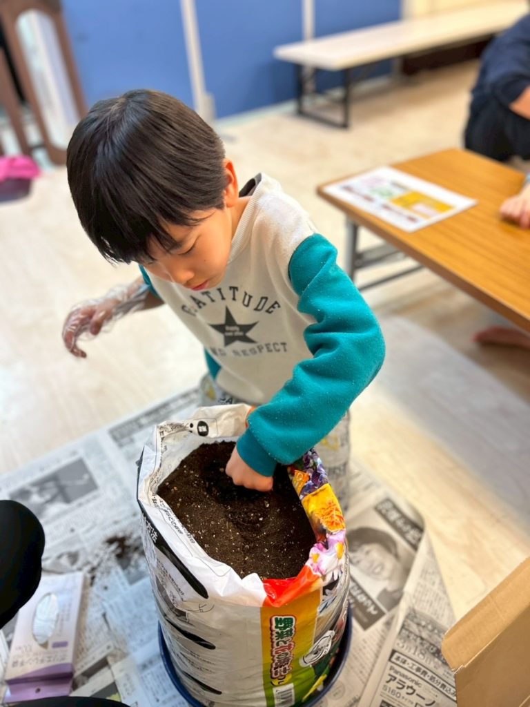 いまここplus:じゃがいもを育ててみようNEWS、いまここplus ブログ いまここplus:じゃがいもを育ててみよう!Part1 🥔今回は第1回目として、「種芋植え」と「水やり」をしました。土を5cm程掘って、じゃがいもの芽が上になるように植えた後、上からたっぷり水やりをしました。子どもたちは、土の感触を楽しみながら丁寧に種芋を植えておられましたよ。植えた後は、円を描きながら満遍なく水やりもできました。「大きくなあれ」や「いっぱいできてね」と、これからの成長を楽しみにしておられる様子でした。今後も成長の様子を観察しながら、みんなでじゃがいもを育てていきます。🔎🌱✨